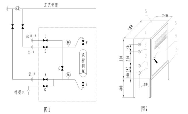 1、HQ-401型采樣器(采樣接管流程圖見圖1、安裝尺寸示意圖見圖2、編號說明見表2)